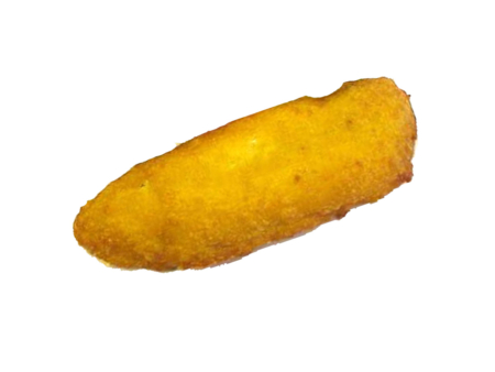 Alaska Seelachsfilet im Backteig aus Blöcken geschnitten aus Fischstücken gefertigt, in würzigem Backteig, praktisch grätenfrei, vorgebraten, tiefgefroren.