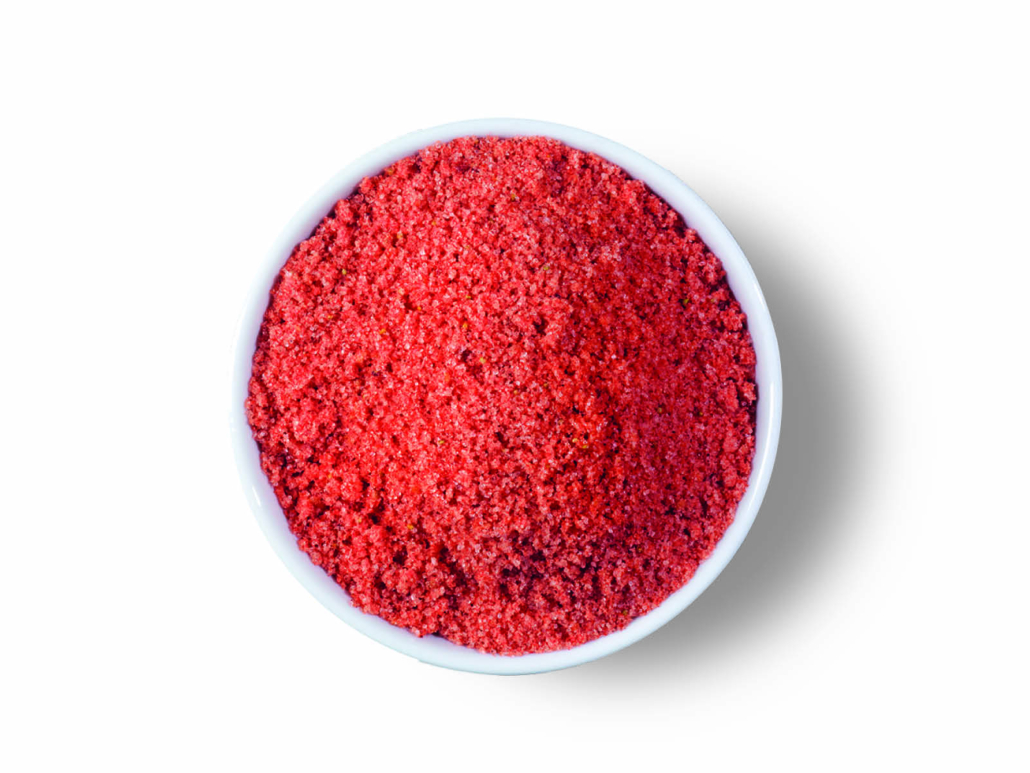 Dextrose (Herkunft: Europäische Union), Saccharose, Erdbeeren getrocknet 18 % (Herkunft: Europäische Union), Hibiskusblüten, natürliches Erdbeeraroma, Säuerungsmittel: Zitronensäure, Rote Beete.