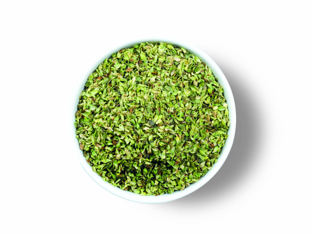 Gerebelter, hellgrüner bis dunkelgrüner Oregano.