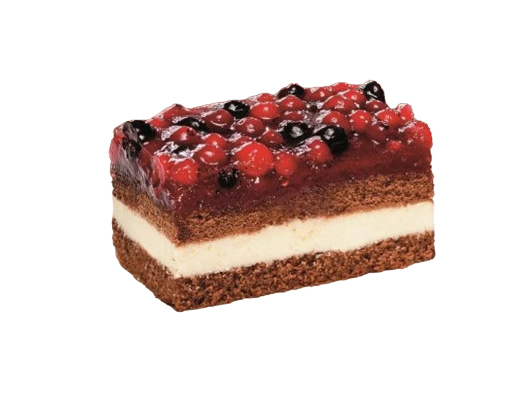 Wasser, 14,8 % SCHLAGSAHNE (CH: Halbrahm), 11,5 % rote Johannisbeeren, Zucker, VOLLEI, Glukose-Fruktose-Sirup, WEIZENMEHL, 4,7 % Erdbeerpüree, 4,7 % schwarze Johannisbeeren, 4,7 % Himbeeren, Invertzuckersirup, 3,4 % Wildheidelbeeren, Stärke (WEIZEN), stark entölter Kakao, Feuchthaltemittel (E 420), Verdickungsmittel (E 410, E 412, E 440, E 406, E 401), Reismehl, modifizierte Stärke, SÜSSMOLKENPULVER, Gelatine, Säureregulatoren (E 331, E 330), pflanzliches Öl (Raps), Emulgatoren (E 475, E 433), Geliermittel (E 407), natürliches Aroma, MAGERMILCHPULVER, Backtriebmittel (E 500), färbende Pflanzenextrakte (schwarze Karotte, Färberdistel, Karotte), Salz, färbende Pflanzenkonzentrate (Rote Beete, Holunderbeere, LAKTOSE, Erdbeersaftkonzentrat, Glukosesirup, Stabilisatoren (E 516, E 450). Produkt enthält: Weizen, Ei, Milch. Kann Spuren enthalten: Erdnuss, Soja, Schalenfrüchte, Lupine.