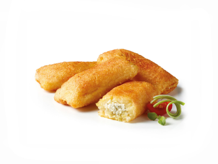 Ausgeformte Kartoffeltaschen, vorgebacken, und tiefgefroren.
