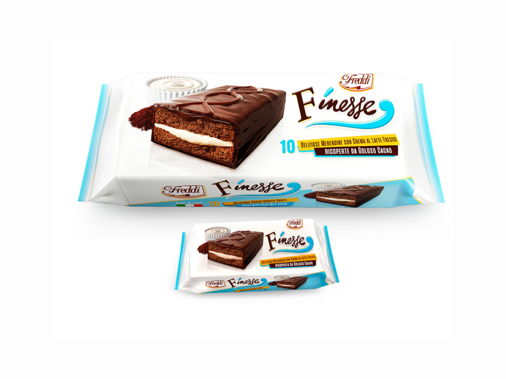 Kleinkuchen mit Vollmilchfüllung (19 %) und Schokoladenüberzug (40 %).