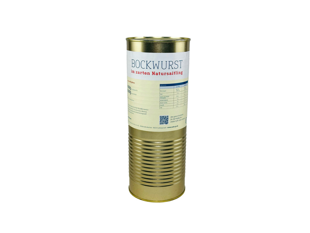 Schweinefleisch 80 %, Trinkwasser, Speisesalz, Gewürze (enthält SELLERIE), Gewürzextrakte, Stabilisator Natriumcitrate, Antioxidationsmittel Ascorbinsäure, Dextrose, Glukosesirup, Geschmacksverstärker Mononatriumglutamat, Konservierungsstoff Natriumnitrit, Natursaitling vom Schaf, Buchenholz-Rauch. Produkt enthält: Sellerie.