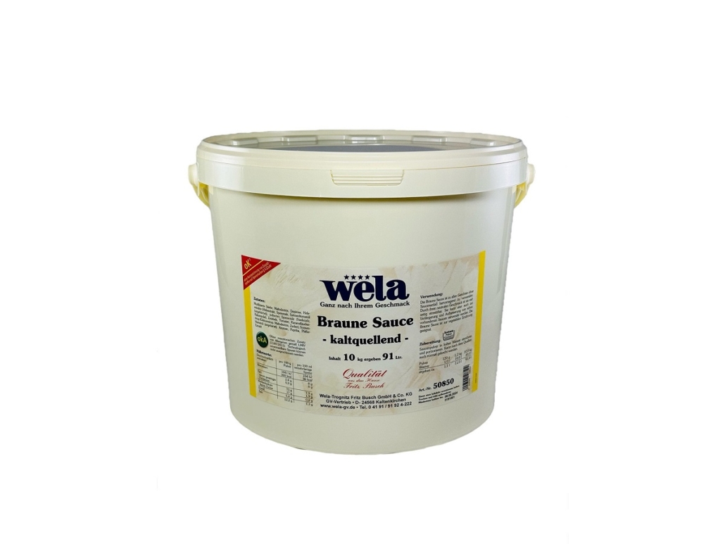 Die kaltquellende Braune Sauce wird auf der Basis ausgesuchter pflanzlicher Rohstoffe hergestellt. Die Braune Sauce ist gut dosierbar und leicht zu verarbeiten. Ihre besonderen Eigenschaften sind ausgesprochen vielseitig wie z.B.: Sauce kalt zubereiten und portionieren, keine Hautbildung, gefrier-tau-stabil.