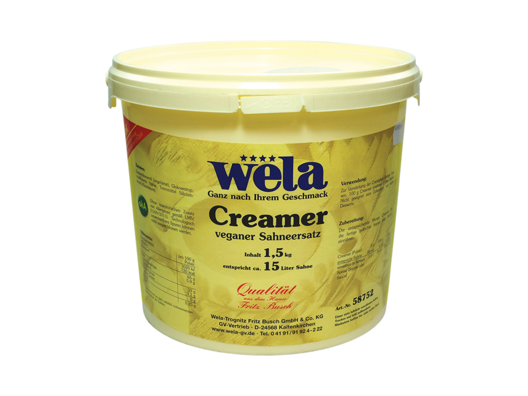 Creamer ist ein veganer Sahneersatz zur Verfeinerung der Cremigkeit von Suppen und Soßen. Der Creamer kann direkt in die heiße Speise eingerührt werden, verbessert das Mundgefühl und ist sehr ergiebig.