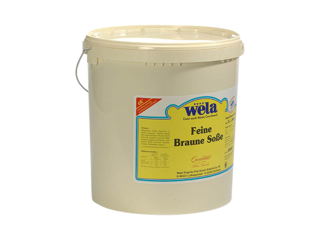 Eine Feine Braune Sauce, die mit Reismehl gebunden ist. Eine stattliche Anzahl weiterer qualitativ wertvoller Zutaten wie Zwiebeln, Paprika, Knoblauch, ergänzt durch eine Gewürzvielfalt, tragen zur Geschmacksabrundung der Feinen Braunen Sauce bei.