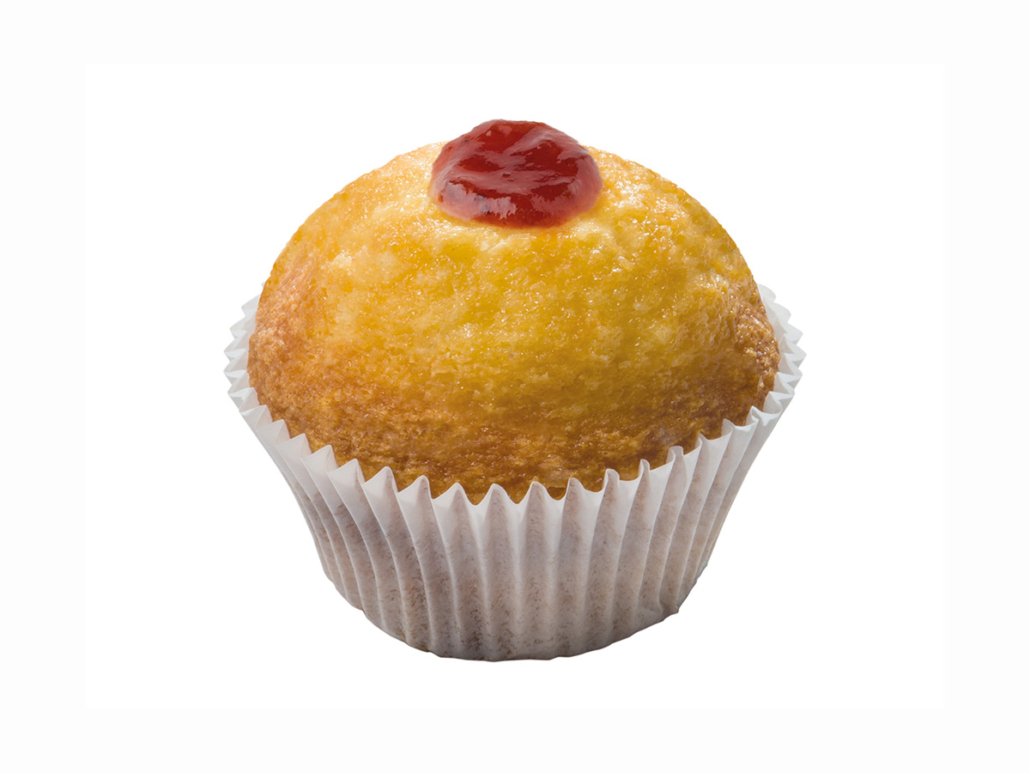 Rundes Kleingebäck aus einem hellen Teig gebacken mit feinster Erdbeerfruchtfüllung.