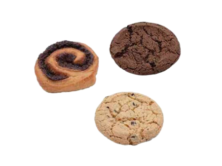 Glutenfreie Cookies & Hefegebäck, tiefgefroren. Chocolate Chips Cookie, Dark Chocolate Cookie, Zimtschnecke.