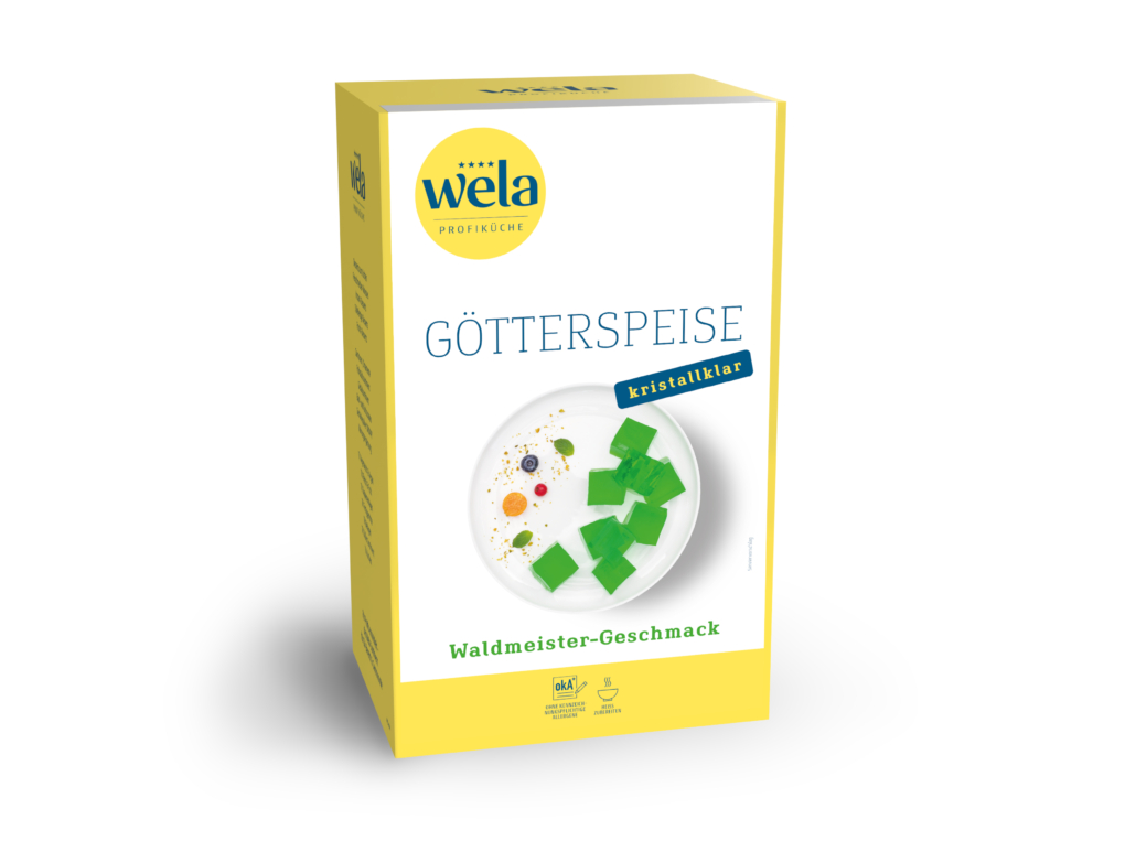 Eine fruchtige Götterspeise mit Waldmeister-Geschmack, die mit Zucker und Wasser