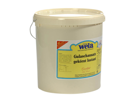 Der Gulaschansatz enthält alle Zutaten, wie zum Beispiel geröstete Zwiebeln, Paprika, Tomaten und ausgesuchte Gewürze, die zum Gelingen eines deftigen Gulaschs erforderlich sind.