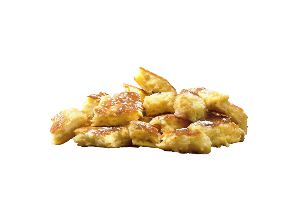 Flaumiger Kaiserschmarrn ohne Rosinen, mit frischem Eischnee, beidseitig gebacken, wie handgemacht, tiefgekühlt, mikrowellengeeignet.
