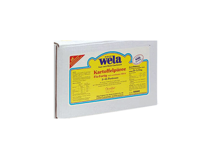 Kartoffel 87 %, Palmöl, MAGERMILCHPULVER 3,6 %, jodiertes Speisesalz (Siedesalz, Kaliumjodat), LACTOSE, MILCHEIWEISS, Stabilisator E450, Emulgator E471, Aroma, Curcuma, Antioxidationsmittel E304. * ohne technologische Wirkung im zubereiteten Produkt, deshalb ist die Kennzeichnung von Zusatzstoffen auf Speisekarten (gem.deutscher LMZDV) nicht erforderlich. Produkt enthält: Milch.