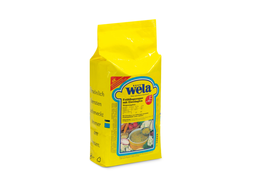 Eierteigwaren 33 % (HARTWEIZENGRIESS, EI), Gemüsemischung 13 % (Karotten, Erbsen, Zwiebeln, Lauch, Tomaten, Petersilienwurzeln), Maltodextrin, gekörnte Brühe (aufgeschlossenes Pflanzeneiweiß, Speisesalz, Sonnenblumenöl (ungehärtet)), Stärke, Hefeextrakt, Sonnenblumenöl (ungehärtet), Petersilie, Muskatblüte, Pfeffer. Produkt enthält: Weizen, Ei. Kann Spuren enthalten: Soja, Milch, Sellerie, Senf