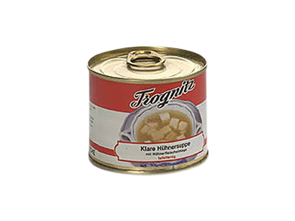 Eine klare, leichte gelbliche suppe mit ausgeprägtem Hühner-Geschmack. Als Einlage wird ausschließlich mageres, gewürfeltes Hühnerfleisch eingesetzt. Die Suppe kann durch verschiedene Einlagen wie z. B. Nudeln, Reis, Gemüse oder Kartoffeln variiert werden.