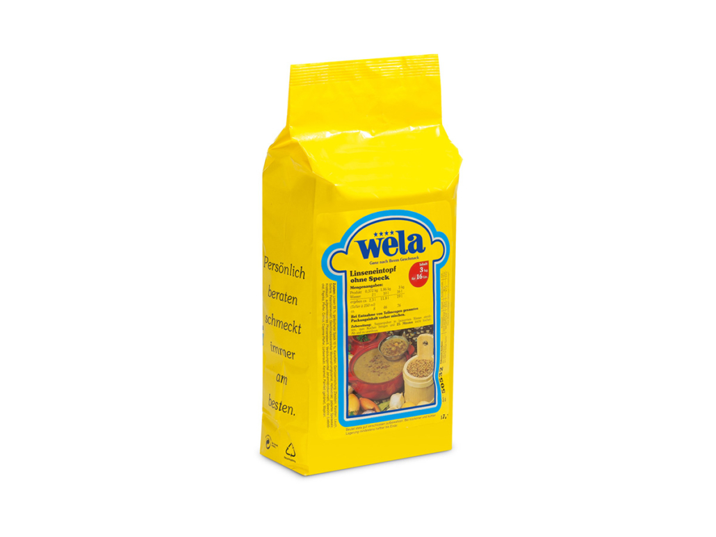 Linsen 66 %, Gemüsemischung 14 % (Kartoffeln, Karotten, Röstzwiebeln (Zwiebeln, Sonnenblumenöl (ungehärtet)), Lauch, Petersilienwurzeln), jodiertes Speisesalz (Siedesalz, Kaliumjodat), Sonnenblumenöl (ungehärtet), Rauchsalz (Speisesaslz, Rauch), Karamellzuckersirup (Glukosesirup, Maltodextrin, Zucker), Liebstöckel, Majoran, Thymian. . . Kann Spuren enthalten: Ei, Soja, Milch, Sellerie, Senf