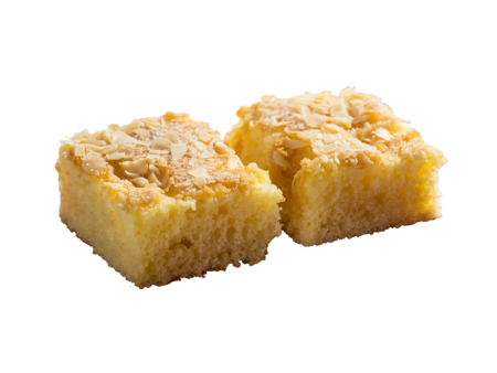 Saftiger Rührkuchen mit einer Persipanfüllung, belegt mit feinen Mandelblättchen und Zucker.