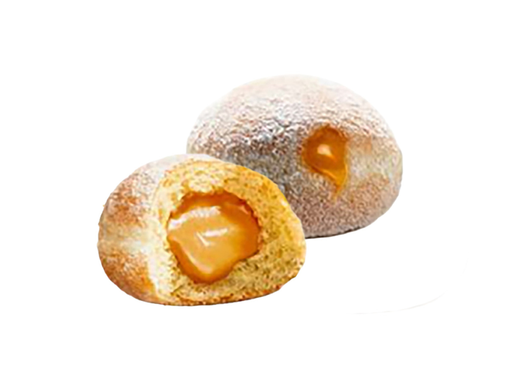 Mini-Siedegebäck mit verführerischem Karamell-Kern, mit Traubenzucker abgestaubt, fertig gebacken, tiefgefroren.