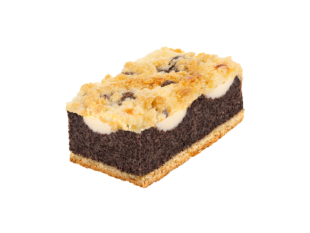 Hefe-Mürbeteig mit Mohnsamenfüllung (61 %) und Quarkfüllung (15,5 %), dekoriert mit Butterstreuseln, vorgeschnitten,