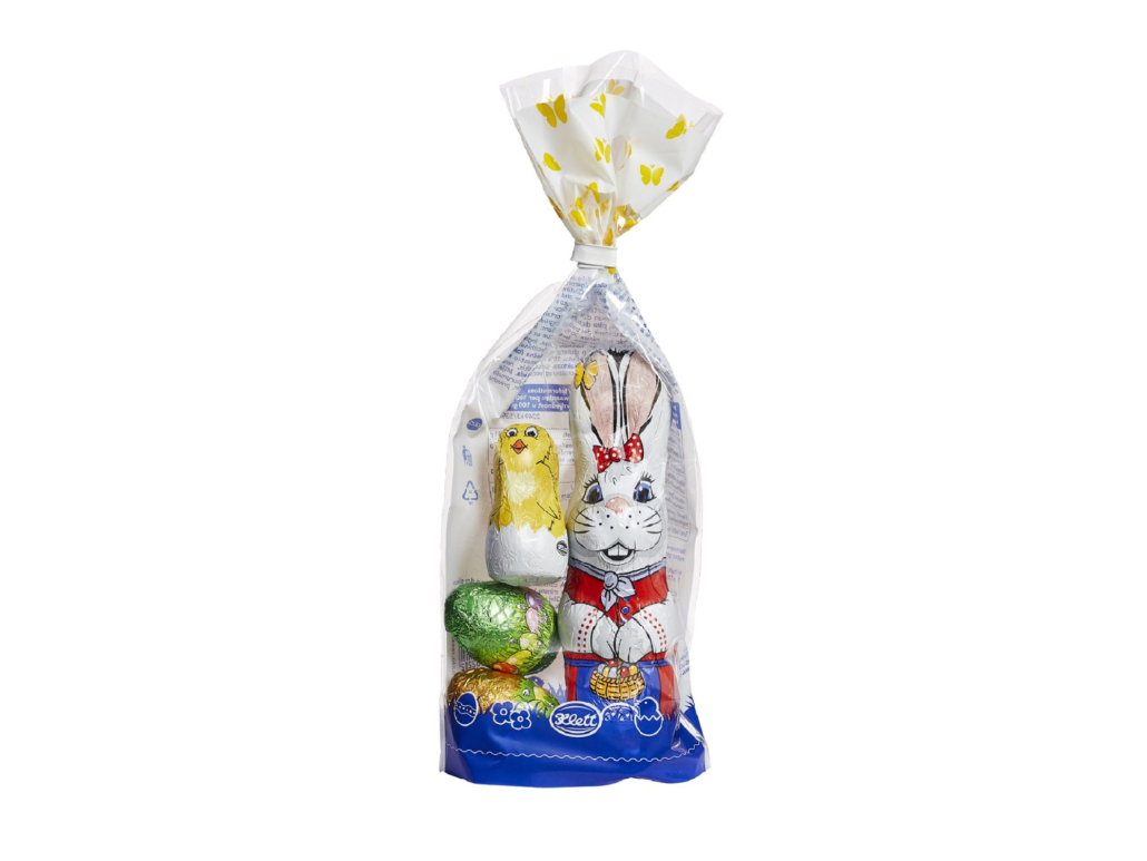 Mischbeutel mit verschiedenen Osterfiguren aus Vollmilchschokolade - Kakao: 30 % mindestens.