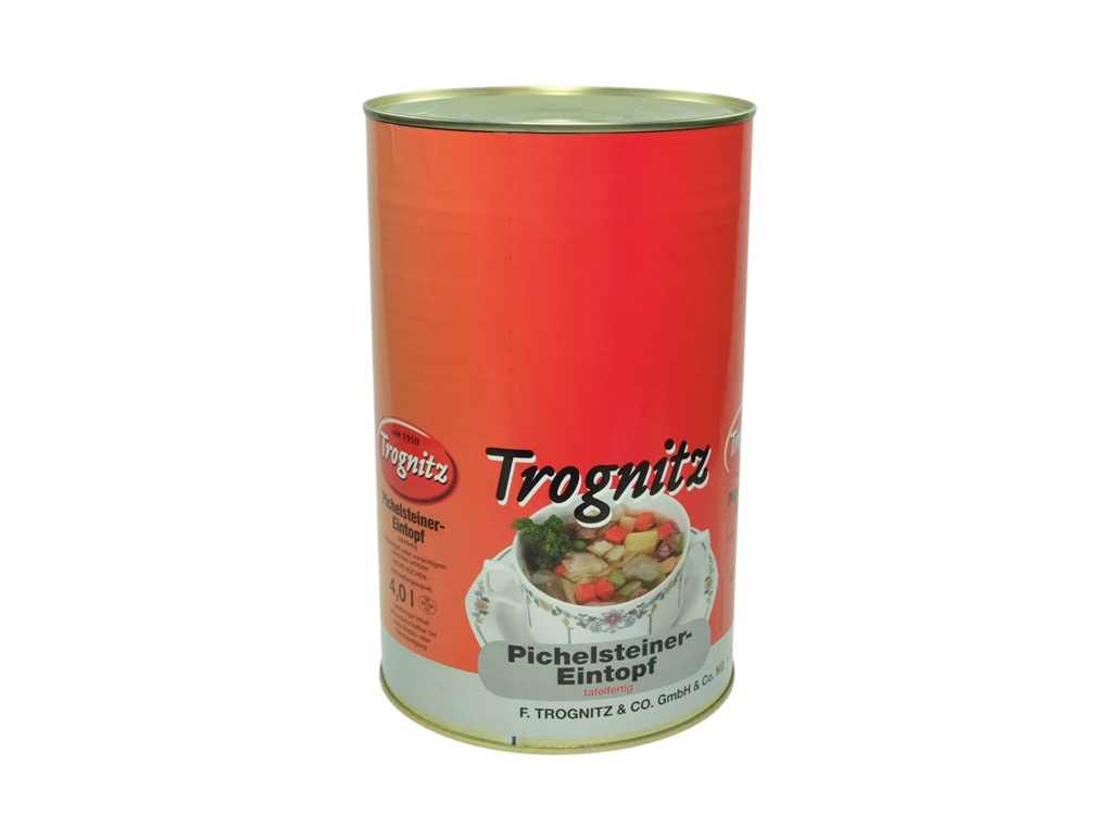 Ein kräftiger Eintopf aus Weißkohl, Karotten, Porree, Erbsen, Brechbohnen, Kartoffeln, Rindfleisch und durchwachsenem Speck.