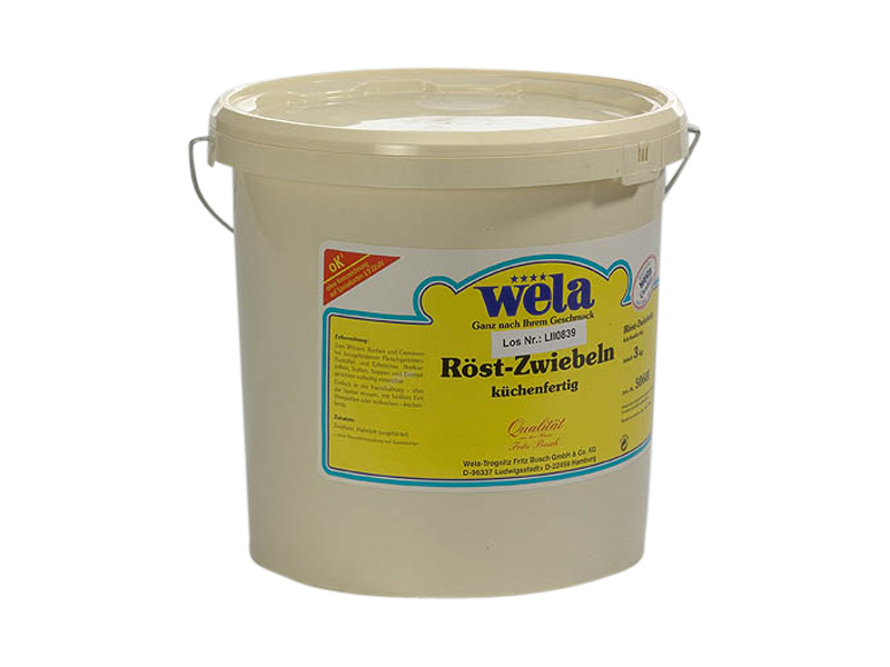 Hergestellt aus gesunden, reifen Speisezwiebeln, geputzt, gereinigt, in frischem Pflanzenfett geröstet und abgefüllt.