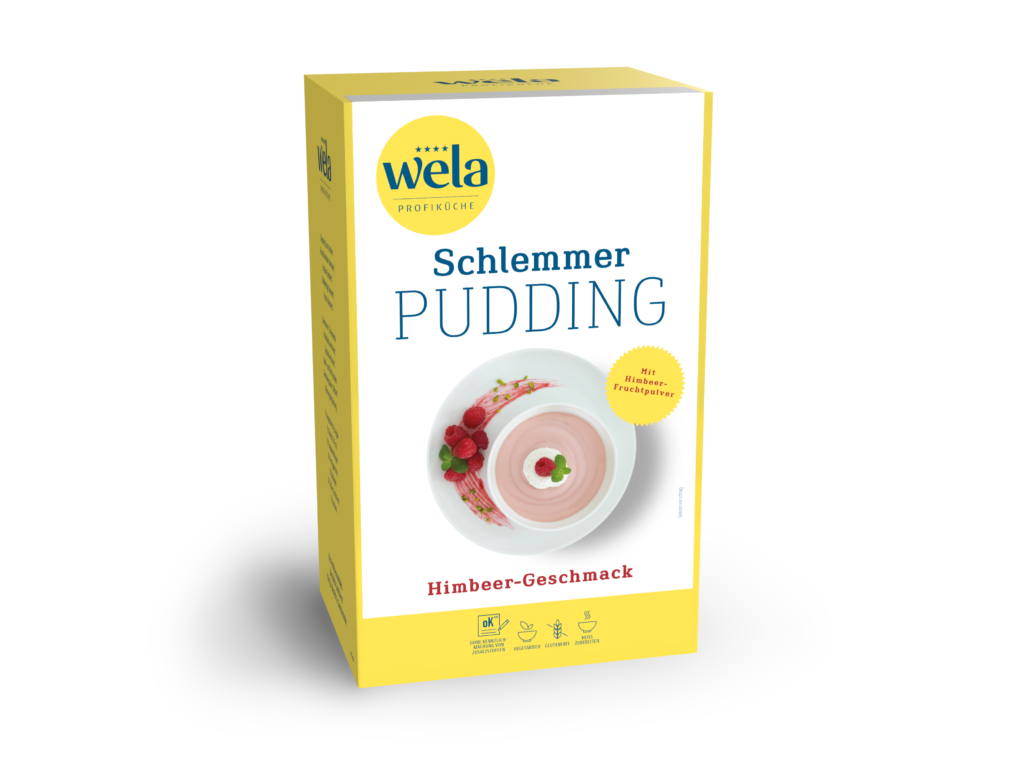 Ein Schlemmerpudding zum Kochen mit Himbeer-Geschmack und Himbeerfruchtpulver.