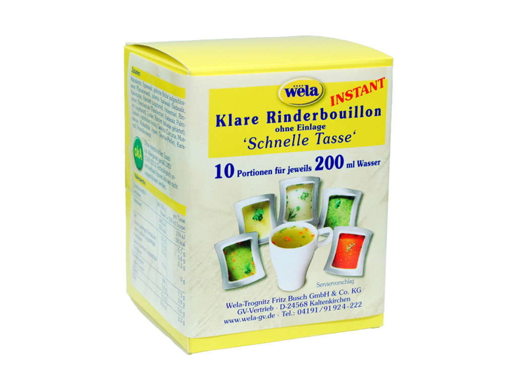 Instant klare Rinderbouillon, schnell zubereitet ohne Kochen.