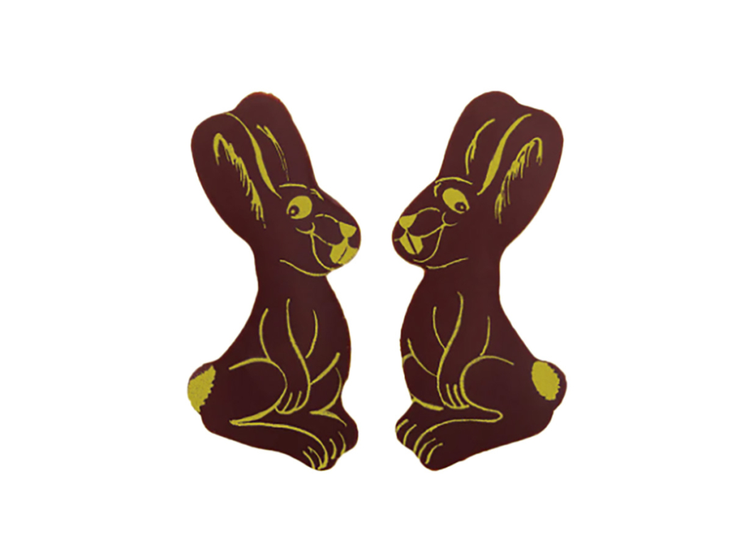 Ostedekor in Hasenform mit weißem Aufdruck. Kakao: mindestens 53 %.