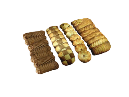 Süßes Trockengebäck auf Weizenmehlbasis mit einem hohen Anteil an Kakao in vier verschiedenen Sorten.