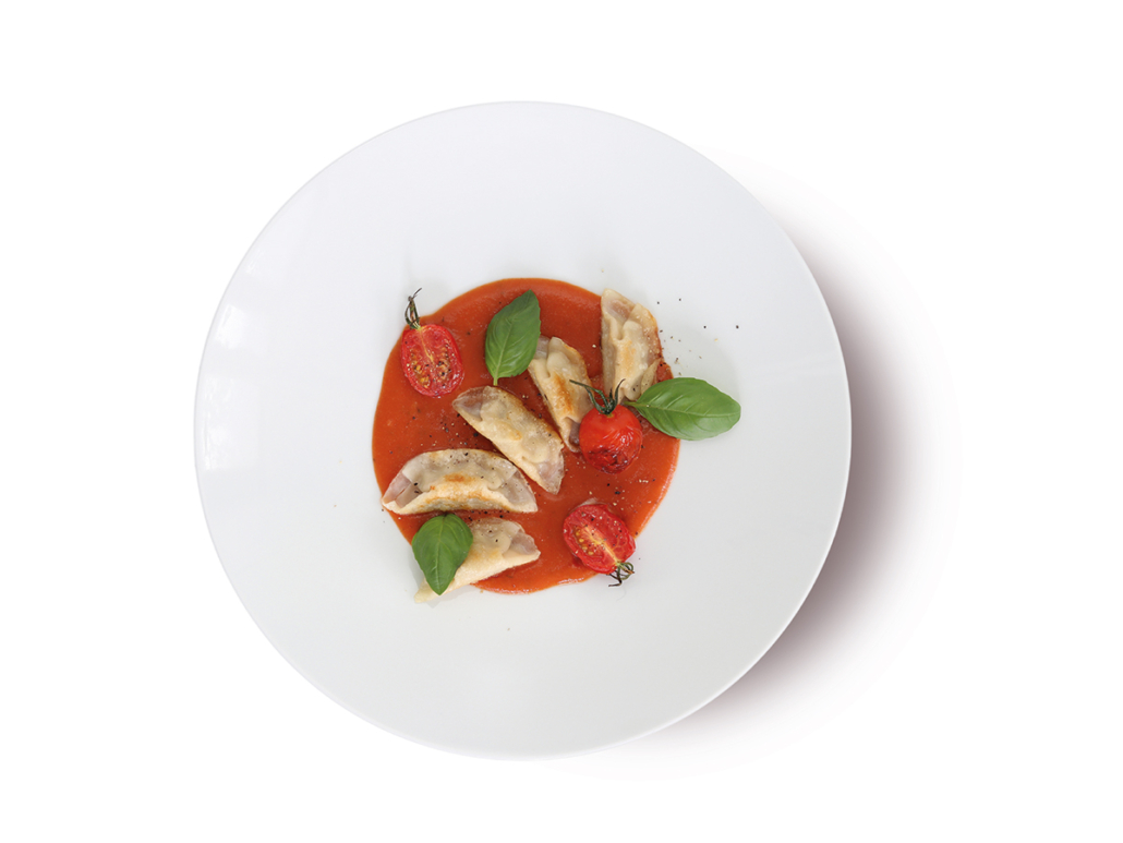 Teigtasche gefüllt mit Hähnchenfleisch traditionell abgeschmeckt, vorgegart, tiefgefroren (IQF).