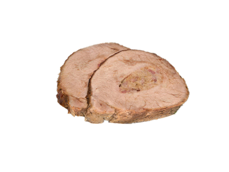 Der Bierbraten besteht aus zugeschnittenem Schweinerücken, gefüllt mit Käse, Röstzwiebeln und Speck, abgerundet mit feinem Bieraroma, tiefgefroren.