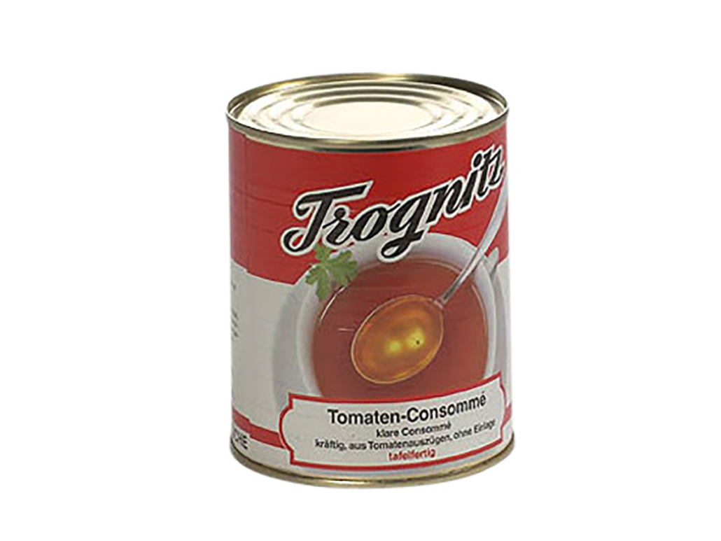 Eine klare, kräftige Consommé aus Tomatenauszügen, ohne Einlage, die jeden Feinschmecker begeistert.
