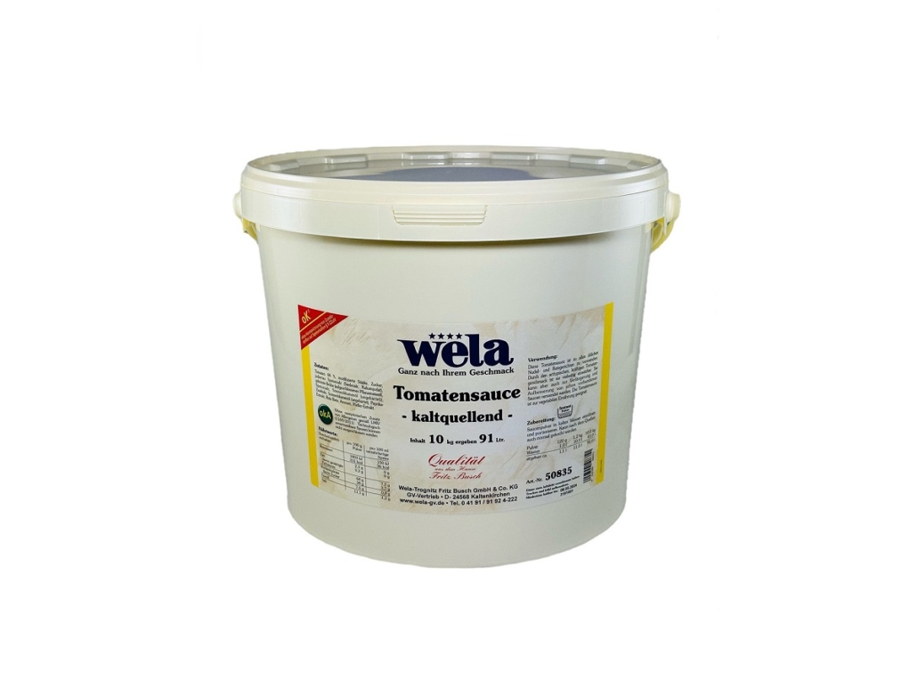 Die kaltquellende Tomatensauce wird unter Verwendung ausgesuchter Stärken und hochwertiger Rohstoffe hergestellt. Die Tomatensauce ist gut dosierbar und leicht zu verarbeiten. Ihre besonderen Eigenschaften sind ausgesprochen vielseitig wie z.B.: Sauce kalt zubereiten und portionieren, keine Hautbildung, gefrier-tau-stabil.