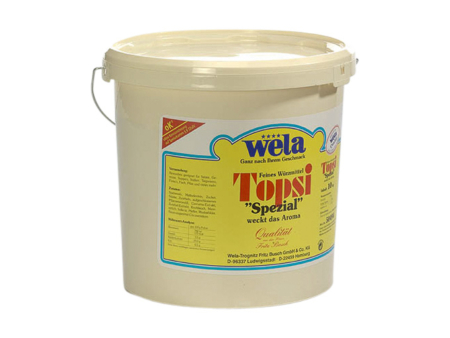 Topsi Spezial ist ein Streuwürzmittel, das seinen speziellen Würzcharakter durch edle Gewürze und Gemüsepulver erhält, die sehr harmonisch aufeinander abgestimmt sind. Stärke und Maltodextrin verbessern die Rieselfähigkeit. Durch seine optimale Komposition besitzt Topsi Spezial die Eigenschaft, den Eigengeschmack der Speisen zu heben und zugleich eine dezente Würzung zu bewirken.