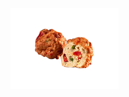 Vegane Gemüsebällchen auf Basis von Gemüse und Weizeneiweiß, vorgegart und tiefgefroren.