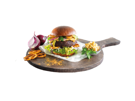 Getreidebasierte, vegane Rohstoffkomposition zur Herstellung von Burgerpatties, Fingerfood und Snacks nach BBQ Art.