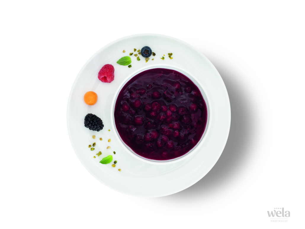 Obstmischung 51 % (Johannisbeeren, Heidelbeeren, Brombeeren, Himbeeren), Trinkwasser, modifizierte Stärke, Sonnenblumenöl (ungehärtet), Aroma, Verdickungsmittel (Guarkernmehl, Johannisbrotkernmehl, Xanthan), Säuerungsmittel Citronensäure, Zimt. . .
