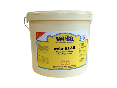 wela-KLAR ist eine klare Gemüsesuppe ohne Einlage von stückigen Bestandteilen. Hergestellt auf der Basis von Gekörnter Brühe aus pflanzlichen, eiweißhaltigen Rohstoffen, Jodsalz, Hefeextrakt und Pflanzenfett. Eine gelungene Komposition aus Gewürzen und Gemüsen geben dieser klaren Suppe ihren typischen Geschmack.